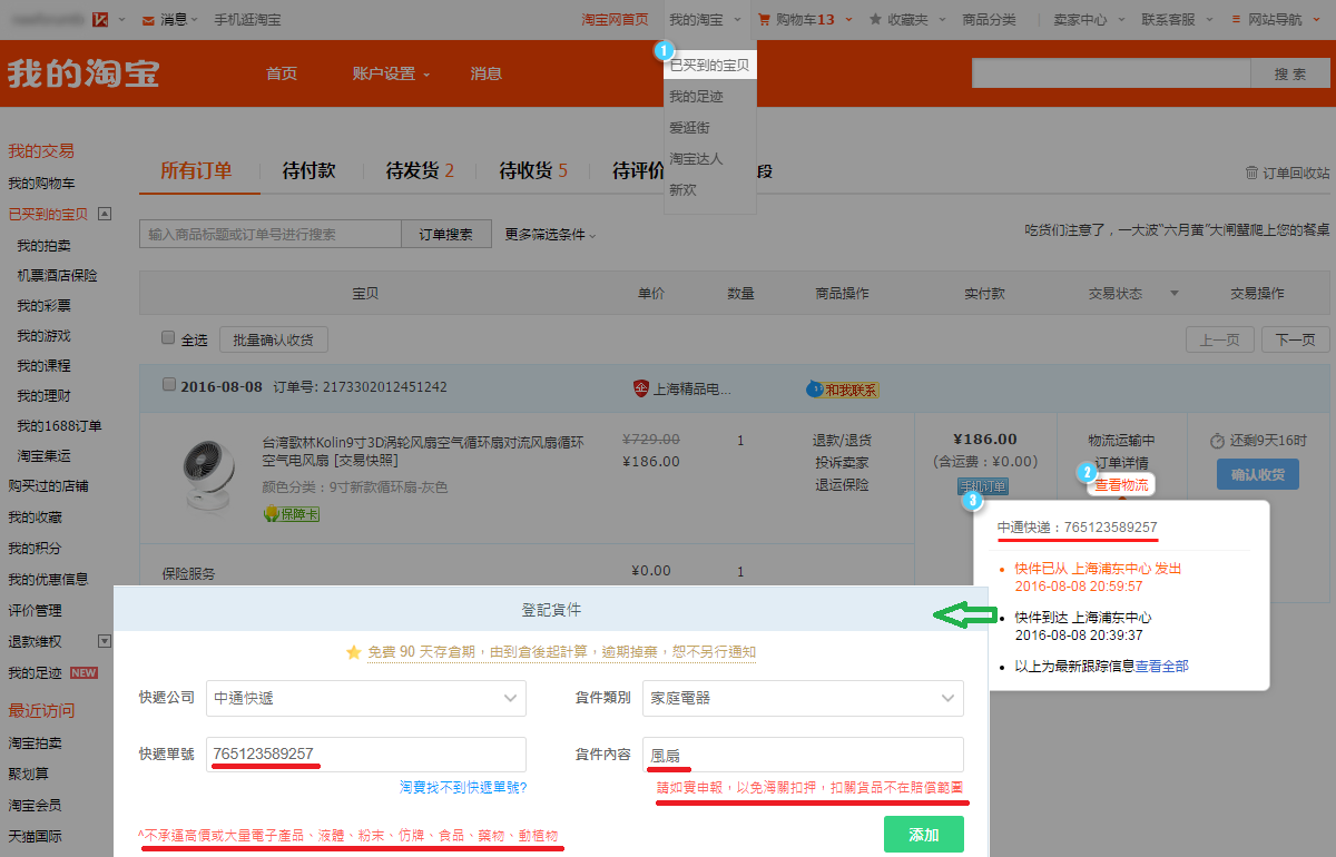 2. 你把淘寶訂單號當成運單號輸入。